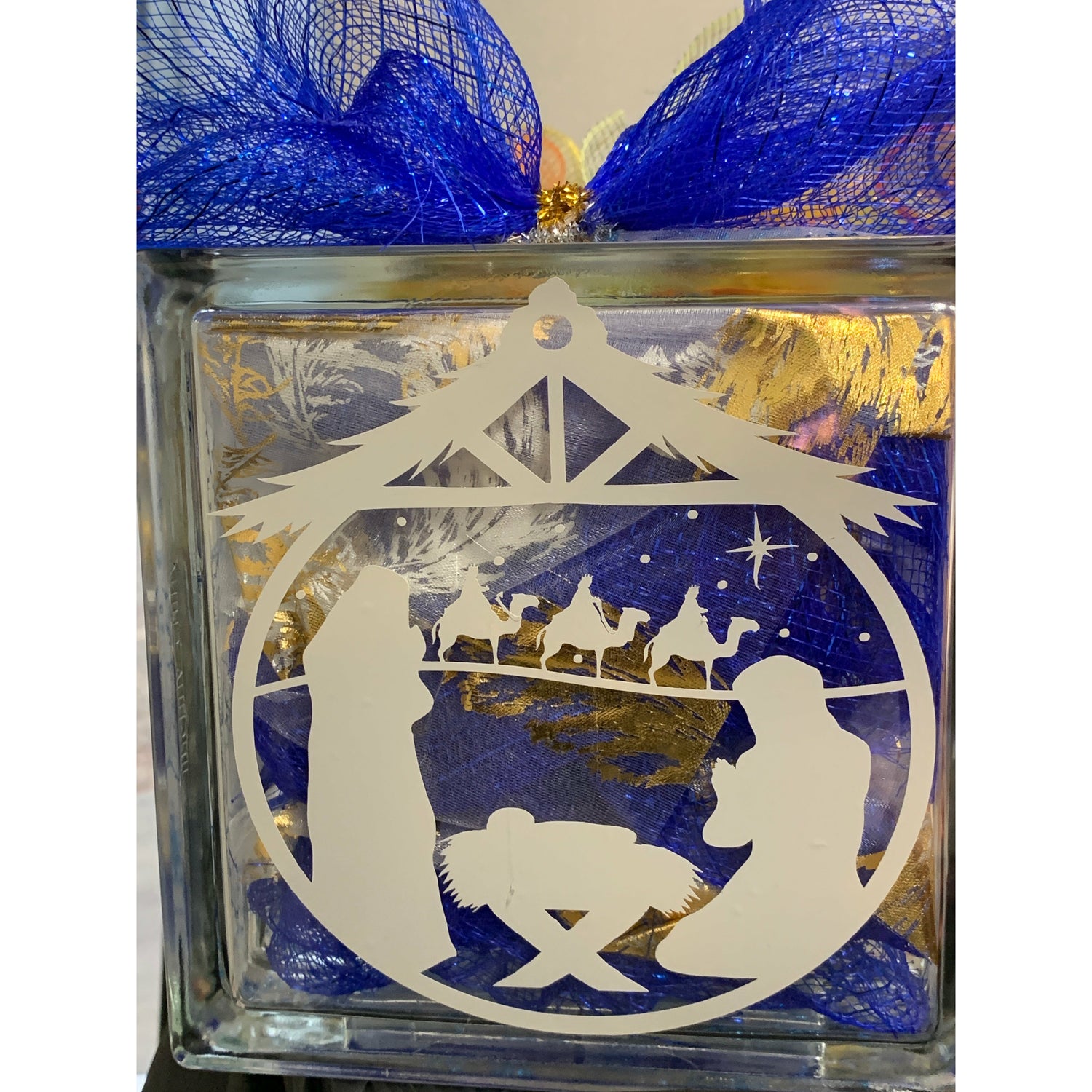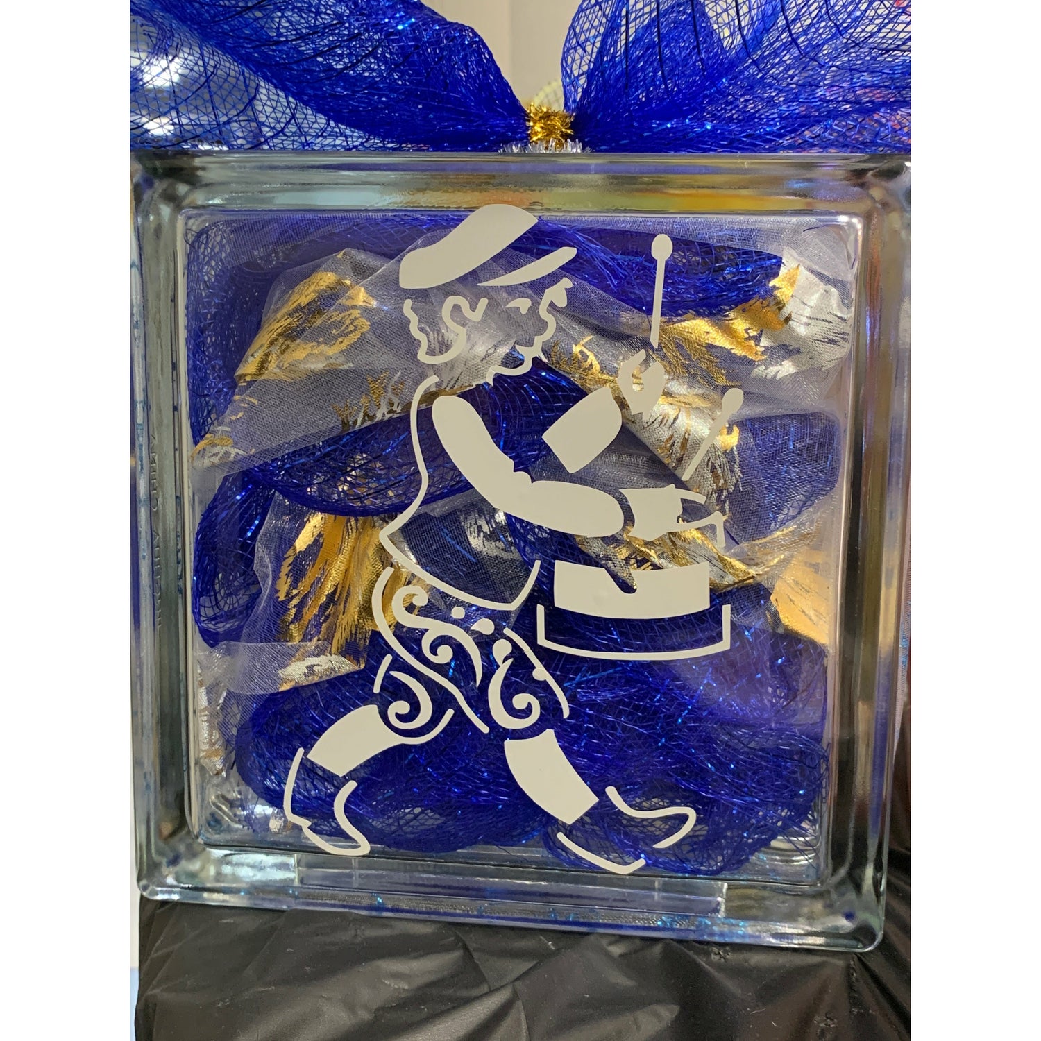 Heavy two sided glass, table or mantle centerpiece. With or without lights. Customization and/or personalization available for small fee.
